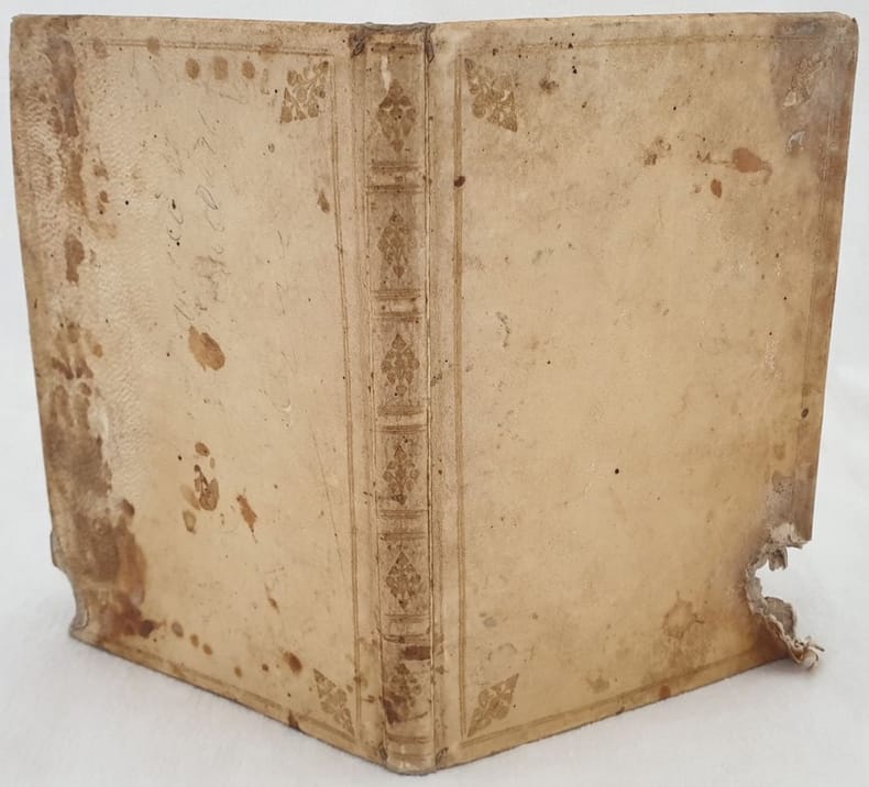 Rara opera di diritto canonico del sacerdote Daniele Concina (1686-1756). Concina era noto principalmente per il suo inflessibile rigore e per le sue orazioni energiche e spesso violente. Il suo intento era quello di un ritorno alla Chiesa delle origini. L'opera è una dissertazione detta nel Liceo di Padova sulla dottrina metafisica del diritto naturale e delle genti. Marca al frontespizio: Minerva con libro in mano. Note manoscritte. In discrete condizioni. Copertina in piena pergamena coeva con decorazioni in oro al dorso e piatti al dorso in mediocri condizioni generali con usure e mancanze ai piatti. Legatura in buone condizioni. All'interno le pagine si presentano in discrete condizioni con fioriture. Macchie di umidità al margine destro. In 16. 19,5x13 cm. Pp. 28+107+(1).Scarce edition of1736 of this work of church right by the priest Daniele Concina (1686-1756). Concina was mainly famous for his severe carachter and his energic and violent orations. His intention was a return to the Church of the origins. The work is a dissertation told in the high school of Padova about metaphysical doctrine natural right and people. Mark in the title page: Minerva with a book in her hand. Handwritten notes. In fair conditions. Parchment coeval cover with gilted decorations in the spine and plates in poor general conditions with lackings in the plates. Binding in good conditions. Inside pages are in fair conditions with foxing. Dump stain in the right edge.In 16. 19,5x13 cm. Pp. 28+107+(1).