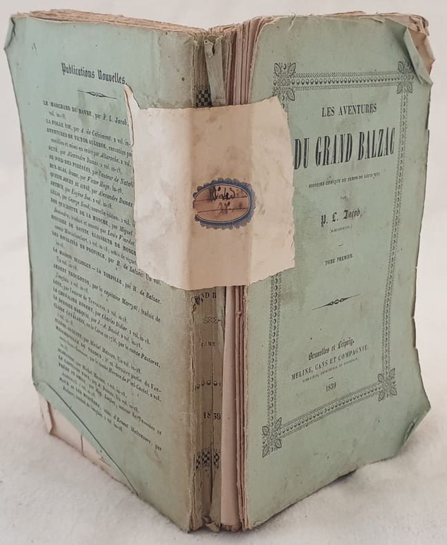Seconda edizione del 1839 di questo romanzo scritto da Paul Lacroix (1806-1884). L'opera era composta da due volumi, siamo in possesso del primo tomo solamente. In discrete condizioni. Copertina editoriale in discrete condizioni generali con usure marginali. Piatto anteriore staccato ed etichetta al dorso. Legatura in discrete condizioni. Pagine in buone condizioni con rare fioriture. In 16. 16,5x11 cm. Pp. 277Second edition of 1839 of this novel written by Paul Lacroix (1806-1884). The work was made up of two tomes, we only have the first tome only. In fair conditions. Editorial cover in fair general conditions lightly worn in the extremities. Front plate is detached and label in the spine. Binding in fair conditions. Pages are in good conditions with occasional foxing. In 16. 16,5x11 cm. Pp. 277