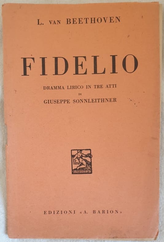 Libretto d'opera del 1940 dell'opera in tre atti "Fidelio" di Ludwig Van Beethoven su libretto di Giuseppe Sonnleithner. La prima rappresentazione ebbe luogo il 15 maggio 1883 a Milano nel Teatro dal Verme.<BR>In buone condizioni. Bella brossura editoriale illustrata. Brossura editoriale in buone condizioni generali con lievi usure ai margini e dorso. Legatura in buone condizioni. All'interno le pagine si presentano in ottime condizioni con rare fioriture. In 16. Dim. 18,5x12 cm. Pp. 32.