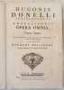 Edizione del 1764 di questa opera omnia di Hugues Doneau (1527-1591). L'opera era composta da dodici tomi, siamo in possesso del sesto tomo in sè completo contenente il Commento al Codice Civile. Note a cura di Oswald Hilliger (1583-1619). All'interno: Azioni, pignoramenti e ipoteche, giudizio divisorio, Diritto di pascolo, Epistola di Alberico Gentile all'autore e sua riposta ecc... In buone condizioni e completo. Copertina in piena pergamena coeva con titolo in oro al dorso in ottime condizioni generali con lievi usure marginali. Legatura in buone condizioni. All'interno le pagine si presentano in buone condizioni con fioriture. Lievi gore d'umidità all'angolo inferiore destro. In folio. Dim. 37x26 cm. Pp. (4)+VIII+1078+(1). Peso Kg. 2