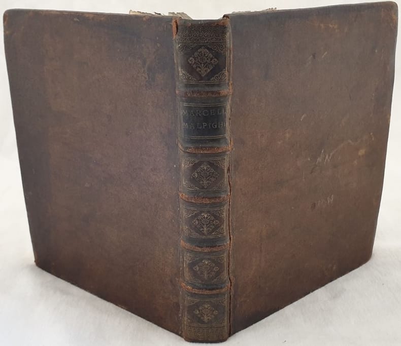 Edizione definitiva del 1698 di questa Opera Posthuma del medico e biologo bolognese Marcello Malpighi (1628-1694) fondatore dell'anatomia microscopica, padre della fisiologia, embriologia e istologia. Tra le varie altre scoperte, fu il primo a vedere i capillari negli animali e a scoprire il legame tra le arterie e le vene. L'Opera Posthuma contiene forse le polemiche più esplicite,quelle accademiche che occorsero negli ultimi anni della sua vita, stampati sia in latino che italiano. All'inizio più di cento pagine di autobiografia che includono la prima descrizione della leontiasi ossea. Interessante la parte dedicata ai denti con relativa tavola. Alla fine 19 tavole ripiegate di parti anatomiche. All'inizio manoscritto di due pagine sulla vita di Malpighi. Firma datata 1792. Ex libris al contropiatto anteriore. L'opera è in un volume ed è completa. In buone condizioni. Copertina in piena pelle coeva con titolo in oro al dorso in buone condizioni generali con lievi usure ai margini e dorso. Cerniera anteriore con rotture. Legatura in buone condizioni. All'interno le pagine si presentano in buone condizioni con fioriture e bruniture. In 8. 25x20,5 cm. Pp. (16)+387+(19).Beauitufl illustrated edition of 1698 of this Opera Posthuma by the italian physician and biologist Marcello Malpighi (1628-1694) establisher of microscopical anatomy, father of physiology, enbriology and isthology. Opera Posthuma contains perhaps the most explicit polemics, including extended reproductions of letters exchanged with his detractors, printed in parallel Latin and Italian. Opera Posthuma starts with a 100+ page autobiography, and also includes the first description of leontiasis ossea. Interesting part dedicated to teeth. At the end 19 folded plates of anatomical parts. At the beginning manuscript of two pages about the life of Malpighi. Signature dated 1792. Ex libris in the front counterplate. The work is in one volume and it is complete. In good conditions. Leather coeval cover with gilted title in the spine in good general conditions lightly worn in the extremities. Front hidge with light cracks. Binding in good conditions. Inside pages are in good conditions with foxing and yellowing. In 8. 25x20,5 cm. Pp. (16)+387+(19).