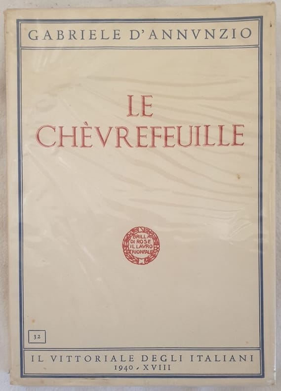 Edizione del 1940 del dramma "Le Chevrefeuille " dello scrittore, poeta, drammaturgo, politico e giornalista Gabriele D'Annunzio (1863-1938). Volume n. 32 della collana edita dalla fondazione "Il Vittoriale degli italiani". In ottime condizioni. Brossura editoriale in ottime condizioni generali con lievi usure ai margini e dorso. Pellicola protettiva con strappi e mancanze. Legatura in buone condizioni. All'interno le pagine si presentano in ottime condizioni con rare fioriture. In 8. Dim. 23x16,5 cm. Pp. 179+(3). Edition of 1940 of the drama "Le Chevrefeuille" by the writer poet dramawriter politician and journalist Gabriele D'Annunzio (1863-1938). Volume n. 32 of the series edited by the fondation "Il Vittoriale degli italiani". In very good conditions. Editorial cover in very good general conditions slightly worn in the extremities. Binding in good conditions. Inside pages are in very good conditions with occasional foxing. In 8. Dim. 23x16,5 cm. Pp. 179+(3). <BR><BR>