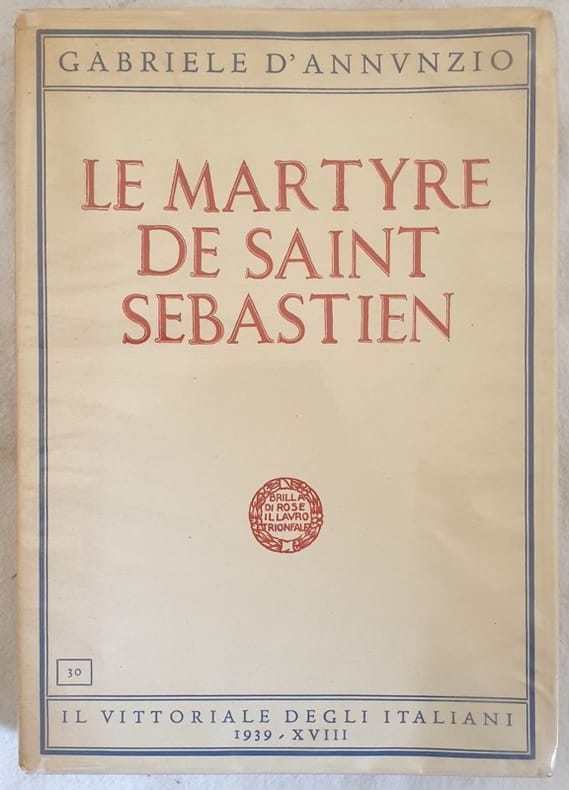 Edizione del 1939 della tragedia "Le martyre de Saint Sebastien" dello scrittore, poeta, drammaturgo, politico e giornalista Gabriele D'Annunzio (1863-1938). Volume n. 30 della collana edita dalla fondazione "Il Vittoriale degli italiani" In ottime condizioni. Brossura editoriale in ottime condizioni generali con lievi usure ai margini e dorso. Legatura in buone condizioni. All'interno le pagine si presentano in ottime condizioni con rare fioriture. In 8. Dim. 22,5x16,5 cm. Pp. 272+(1). Edition of 1939 of the tragedy "Le martyre de Saint Sebastien" by the writer poet dramawriter politician and journalist Gabriele D'Annunzio (1863-1938). Volume n. 30 of the series edited by the fondation "Il Vittoriale degli italiani". In very good conditions. Editorial cover in very good general conditions slightly worn in the extremities. Binding in good conditions. Inside pages are in very good conditions with occasional foxings. In 8. Dim. 22,5x16,5 cm. Pp. 272+(1).