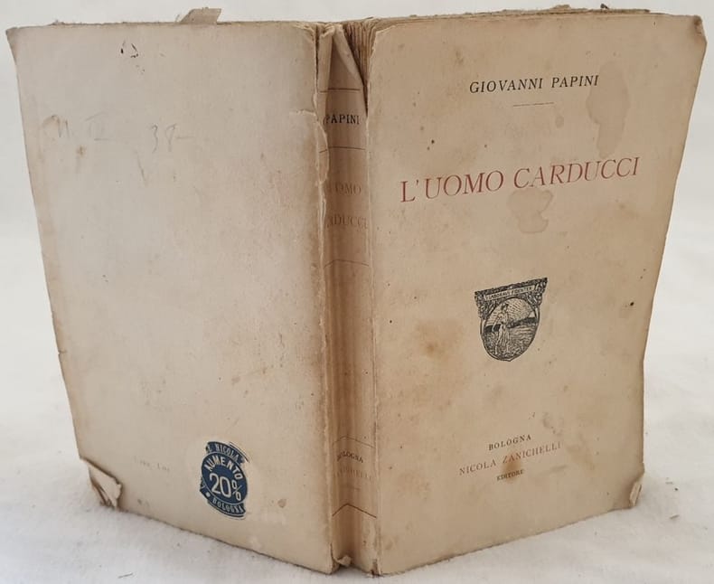 Edizione del 1918 di questa opera dello scrittore Giovanni Papini (1881-1956) sul poeta e scrittore Giosuè Carducci (1835-1907). In buone condizioni. Copertina editoriale in buone condizioni con lievi usure ai margini e dorso. Mancanze al dorso. Legatura in buone condizioni. Pagine in buone condizioni con fioriture. In 16. cm 16,5x11. Pp. 276+(4). Edition of 1918 of this work by Giovanni Papini (1881-1956) about the poet and humanist Giosuè Carducci (1835-1907). In good conditions. Editorial cover in good conditions lightly worn in the extremities. Lackings in the spinbe. Binding in good conditions. Pages in good conditions with foxing. In 16. cm 16,5x11. Pp. 276+(4).