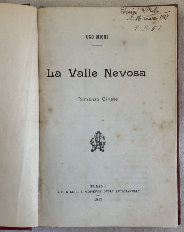 Prima edizione del 1899 di questo romanzo di Ugo Mioni (Trieste 1870-Montepulciano 1935). Firma al frontespizio datata 1917. In buone condizioni. Copertina in tela in buone condizioni generali con lievi usure marginali. Legatura in buone condizioni. Pagine in buone condizioni con fioriture. In 8. cm 19x13. Pp. 286+(2) First edition of 1899 of this novel by Ugo Mioni (Trieste 1870-Montepulciano 1935). Signature in the title page dated 1917. In good conditions. Cloth cover in good conditions lightly worn in the extremities. Binding in good conditions. Pages in good conditions with foxing. In 8. cm 19x13. Pp. 286+(2)