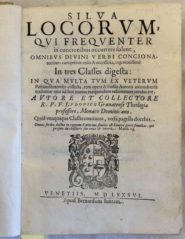 Edizione Giunta del 1586 della più celebre opera del teologo spagnolo Luis de la Granada (1504-1588). L'opera venne pubblicata contemporaneamente a Lione, Parigi e Venezia. Tra gli argomenti trattati: Contemplazione della croce, peccati, Paura della morte, estrema unzione, fine del mondo, Profonda orazione ecc... Introduzione dello stampatore Bernardo Giunta ai lettori. Marca editoriale al frontespizio: Stemma Medici-Cappello: 6 palle, leone, cappello. L'autore suddivide gli argomenti utilizzati nelle prediche in tre classi: luoghi comuni (tra cui predestinazione, Spirito Santo, Angeli, Santi, Martiri), Virtù e vizi (virtu, peccato veniale, blasfemia, invidia, usura, sacrificio, virginità, lussuria, castità), Beatitudine doni e Sacramenti. Alla fine opere della Chiesa Romana. In buone condizioni. Copertina in piena pergamena muta in buone condizioni generali con lievi usure ai margini e dorso. Legatura in buone condizioni. Pagine in buone condizioni con rare fioriture. Alcune gore d'umidità marginali. In 8. Dim. 22x17 cm. Pp. (24)+576+(1).Giunta edition of 1586 of the most famous work by the spanish theologist Luis de la Granada (1504-1588). The work was contemporary published in Lione, Paris and Venice. Introduction fot he publisher Bernardo Giunta to the readers. Editorial mark in the title page: Stemma Medici-Cappello: 6 palle, leone, cappello. At the end works of Roman Church. In good conditions. Full parhcment cover in good general conditions lightly worn in the extremities. Binding in good conditions. Inside pages are in good conditions with occasional foxing. Some dump stains in the edges. In 8. Dim. 22x17 cm. Pp. (24)+576+(1).