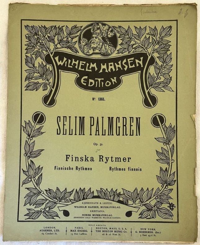 Edizione del 1911 di questo spartito per pianoforte della melodia "Kareòsk Dans" dall'opera 31 di Selim Palmgren (Pori 1878- Helsinki1951). In buone condizioni. Copertina editoriale in buone condizioni con lievi usure marginali. Legatura in buone condizioni. Pagine in buone condizioni con rare fioriture. Illustrazioni in copertina. Formato In folio. cm. 34,5x27,5. Pp. 13.Edition of 1911 of this musical score for piano of the melody "Kareòsk Dans" from the work 31 di Selim Palmgren (Pori 1878- Helsinki1951). In good conditions. Editorial cover in good conditions with lightly worn in the extremities. Binding in good conditions. Pages in good conditions with occasional foxing. Ilustrations in the cover. Formato In folio. cm. 34,5x27,5. Pp. 13.