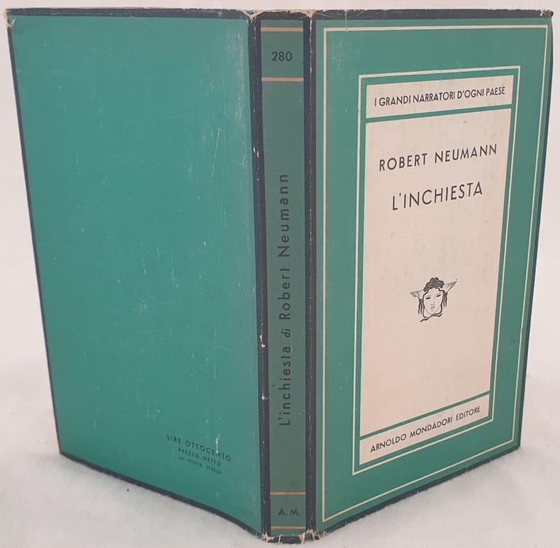 Prima edizione italiana del Luglio 1951 del romanzo "L'inchiesta" dello scrittore tedesco Robert Neumann (1897-1975). Volume numero 280 della collana "Medusa". In ottime condizioni. Copertina editoriale con sovraccoperta in buone condizioni generali con lievi usure ai margini e dorso. Legatura in buone condizioni. Pagine in ottime condizioni con rare fioriture. In 8. cm 19,5x12. Pp. 285+(9) First italian edition of july 1951 of the novel "L'inchiesta" by the german writer Robert Neumann (1897-1975). Volume number 280 of the series "Medusa". In very good conditions Editorial cover with dustjacket in good conditions lightly worn in the extremities. Binding in good condition. Pages in good conditions with occasional foxing. In 8. cm 19,5x12. Pp. 285+(9)