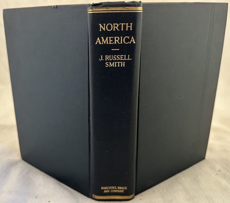 Edizione del 1925 di questa interessante opera sul Nord America di J. Russell Smith. L'autore analizza l'aspetto etnografico, economico, risorse e sviluppo, prospettive del continente dal punto di vista agricolo, industriale e commerciale. Numerose illustrazioni e foto d'epoca mostrano diverse vedute (New England, New York, Brooklyn, New Brunswick, Baltimore, Louisville, Wisconsin, Pittsburgh, Beulah, New Orleans, Duluth, Cleveland, Butte Montana, Denver, Idaho, Silver City, El Paso, Phoenix, Death Valley, Los Angeles, San Francisco, Alaska ecc... Alla fine mappa ripiegata del Nord America. In ottime condizioni. Copertina in tela editoriale in ottime condizioni con lievi usure marginali. Legatura in buone condizioni. Pagine in buone condizioni generali con fioriture. In 8. Dim. 19,5x13. Pp. VIII+849. Peso Kg. 1,500.Edition of 1925 of this interesting work about North America by J. Russell Smith. the author analyzes the ethnographyc, economical, resources and development, industrial and commercial. Different illustrations and views inside (New England, New York, Brooklyn, New Brunswick, Baltimore, Louisville, Wisconsin, Pittsburgh, Beulah, New Orleans, Duluth, Cleveland, Butte Montana, Denver, Idaho, Silver City, El Paso, Phoenix, Death Valley, Los Angeles, San Francisco, Alaska ecc... At the end folded map of North America. In very good conditions. Cloth editorial cover in very good conditions lightly worn in the extremities. Binding in good conditions. Pages in good conditions with foxing. In 8. Dim. 19,5x13. Pp. VIII+849. Peso Kg. 1,500.