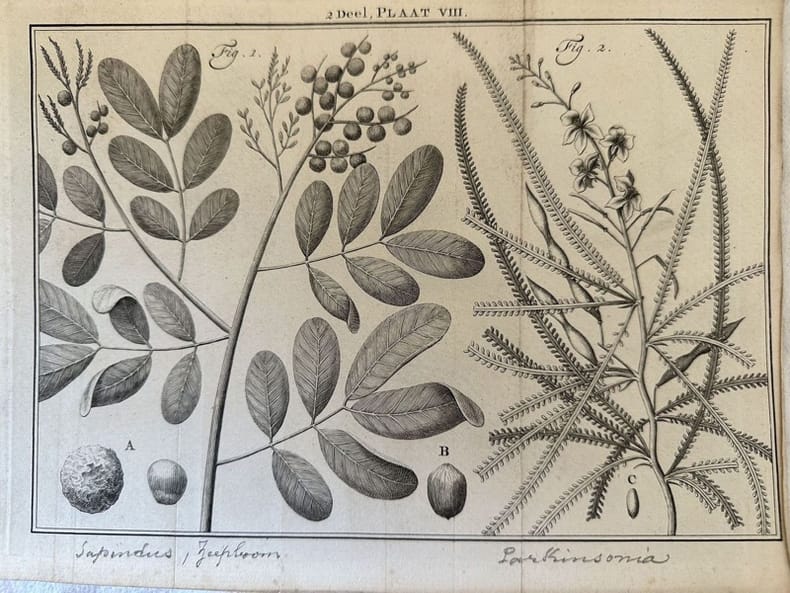 Finissima incisione tratta dalla monumentale opera di botanica "Natuurlyke historie" del naturalista olandese Maarten Houttuyn (1720-1798). Nomi delle specie manoscritti a matita. Atlante: Natuurlyke historie of uitvoerige Beschryvingder Dieren Planten Autore: Maarten Houttuyn (1720-1798) Data: 1761/1773 Tecnica: Acquaforte Dimensione del foglio: 200x262 mm Dimensione incisione: 167x243 cm Condizioni: Buone. Fioriture. Very fine engraving taken from the monumental work of botany "Natuurlyke historie" by the durch engraver Maarten Houttuyn (1720-1798). Names of the species handwritten with pencil. Atlas: Natuurlyke historie of uitvoerige Beschryvingder Dieren Planten Author: Maarten Houttuyn (1720-1798) Date: 1761/1773 Technique: Etching Leaf Dimension:200x262 mm Engraving Dimension:167x243 cm Conditions: Good conditions. Foxing