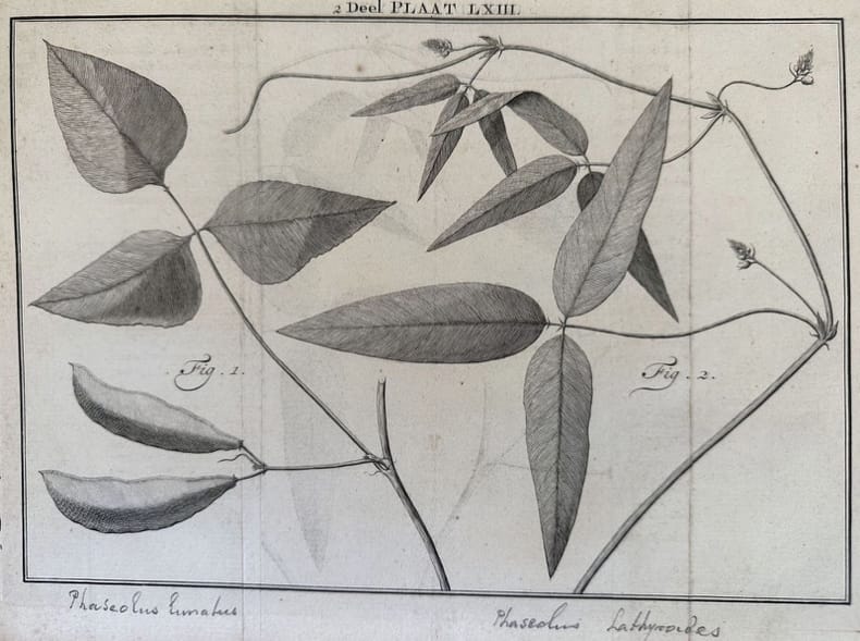 Finissima incisione tratta dalla monumentale opera di botanica "Natuurlyke historie" del naturalista olandese Maarten Houttuyn (1720-1798). Nomi delle specie manoscritti a matita. Atlante: Natuurlyke historie of uitvoerige Beschryvingder Dieren Planten Autore: Maarten Houttuyn (1720-1798) Data: 1761/1773 Tecnica: Acquaforte Dimensione del foglio: 265x202 mm Dimensione incisione: 240x168 cm Condizioni: Buone. Fioriture.Very fine engraving taken from the monumental work of botany "Natuurlyke historie" by the durch engraver Maarten Houttuyn (1720-1798). Atlas: Natuurlyke historie of uitvoerige Beschryvingder Dieren Plante <BR>Author: Maarten Houttuyn (1720-1798) Date: 1761/1773 Technique: Etching Leaf Dimension:265X200 mm Engraving Dimension:242x167 cm Conditions: Good conditions. Foxing