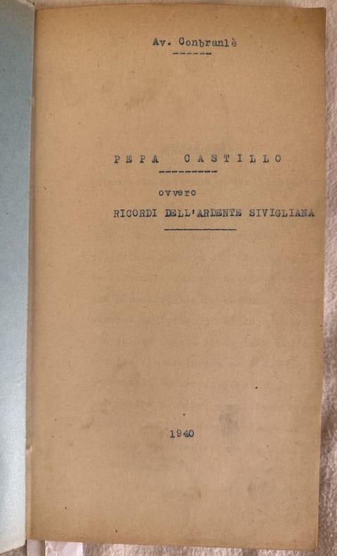 Rarissimo romanzo erotico autoprodotto in poche copie battute a macchina di Cobranlè, probabile pseudonimo. All'interno cinque illustrazioni erotiche. La diffusione di scritti erotici era proibita durante il periodo fascista. In buone condizioni. Copertina morbida in buone condizioni generali con lievi usure ai margini e dorso. Mancanze al dorso. Legatura in buone condizioni. Pagine in buone condizioni con rare fioriture. In 8. cm. 22,5x14,5. Pp. 91.Very scarce erotic novel autoproduced ina few copy written with typemachine by Cobranlè, probably a pseudonymous. Inside there are five erotic plates. The spread of erotic writings was forbidden during fascist period. In good conditions. Soft cover in good conditions lightly worn in the extremities. Front plate is detached and back plate almost totally detached. Binding in good conditions. Pages in good conditions with occasional foxing. In 8. cm. 22,5x14,5. Pp. 91.