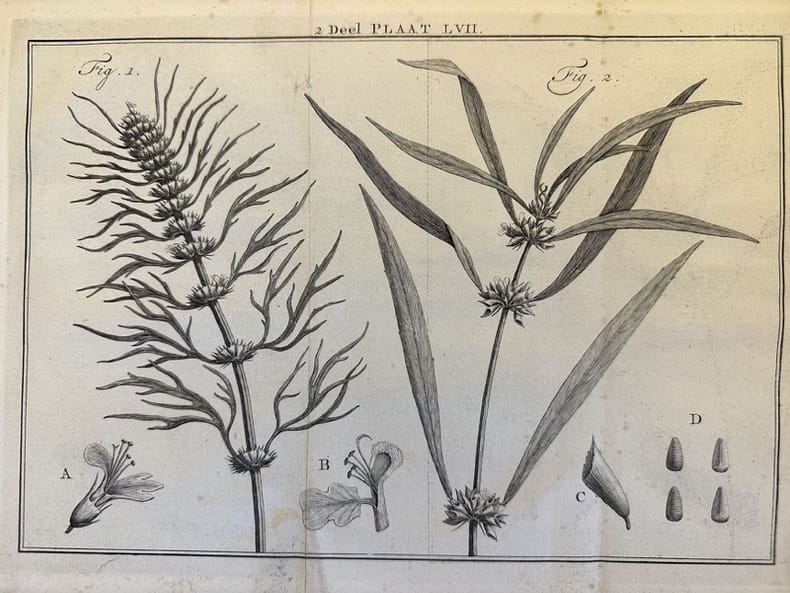 Finissima incisione tratta dalla monumentale opera di botanica "Natuurlyke historie" del naturalista olandese Maarten Houttuyn (1720-1798). Nomi delle specie manoscritti a matita. Atlante: Natuurlyke historie of uitvoerige Beschryvingder Dieren Planten Autore: Maarten Houttuyn (1720-1798) Data: 1761/1773 Tecnica: Acquaforte Dimensione del foglio: 200x268 mm Dimensione incisione: 170x243 cm Condizioni: Buone. Fioriture. Very fine engraving taken from the monumental work of botany "Natuurlyke historie" by the durch engraver Maarten Houttuyn (1720-1798). Names of the species handwritten with pencil. Atlas: Natuurlyke historie of uitvoerige Beschryvingder Dieren Planten Author: Maarten Houttuyn (1720-1798) Date: 1761/1773 Technique: Etching Leaf Dimension:200x268 mm Engraving Dimension:170x243 cm Conditions: Good conditions. Foxing