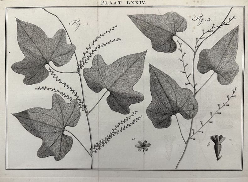 Finissima incisione tratta dalla monumentale opera di botanica "Natuurlyke historie" del naturalista olandese Maarten Houttuyn (1720-1798). Atlante: Natuurlyke historie of uitvoerige Beschryvingder Dieren Planten Autore: Maarten Houttuyn (1720-1798) Data: 1761/1773 Tecnica: Acquaforte Dimensione del foglio: 270x200 mm Dimensione incisione: 255x180 cm Condizioni: Buone. Fioriture. Gora dumidità allangolo superiore destro.Very fine engraving taken from the monumental work of botany "Natuurlyke historie" by the durch engraver Maarten Houttuyn (1720-1798). Atlas: Natuurlyke historie of uitvoerige Beschryvingder Dieren Planten Author: Maarten Houttuyn (1720-1798) Date: 1761/1773 Technique: Etching Leaf Dimension:270X200 mm Engraving Dimension:255x180 cm Conditions: Good conditions. Foxing
