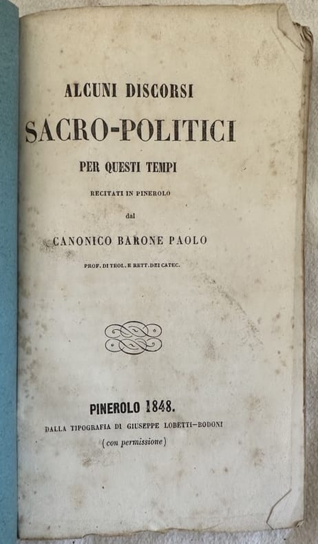 PINEROLO DALLA TIPOGRAFIA DI GIUSEPPE LOBETTI BODONI 1848