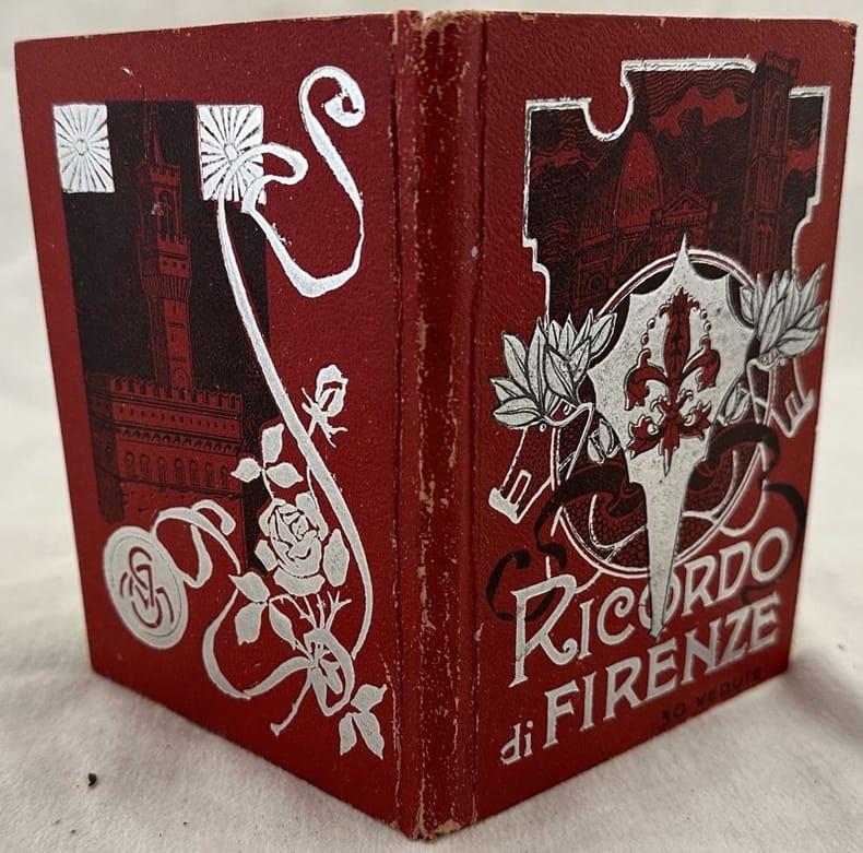 Ricordo di Firenze 32 vedute Edizioni A. Scocchi Milano. Panorama photographique 3,52m x 0, 16m . on joint Ricordo di Venezia Edizioni A. Scocchi Milano. Panorama photographique 3,52m x 0, 16m et Ricordo di Pompei Edizioni A. Scocchi Milano. Panorama photographique 3,52m x 0, 16m. Texte bilingue anglais et français.