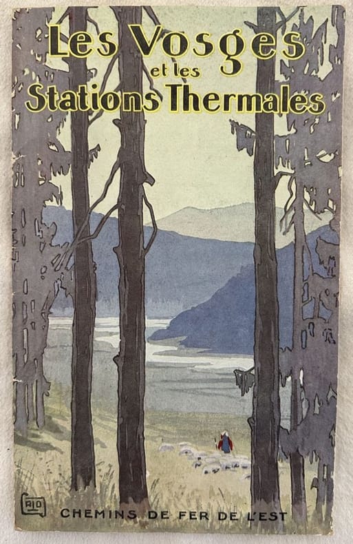 Interessante pubblicazione pubblicitario di inizio novecento sulle stazioni termali dei Vosgi edito dalla "Compagnie des chemis de fer de l'Est". All'interno: stazioni cllimatiche, qualche escursione in montagna, Gerardmer, Quattordici foto d'epoca di vedute (Gerardmer, Donon, Rudlin, BresseBussang, Martigny-les-bains, Luxeuil-les-bains, Plombieres-les-bains, Vittel, Contrexeville, Epinal, Saint Die, Nancy ec. illustrazione in copertina. In ottime condizioni. Copertina editoriale in ottime condizioni generali con lievi usure ai margini e dorso. Legatura in buone condizioni. All'interno le pagine si presentano in ottime condizioni con rare fioriture. In 8. cm 21,5x13. pp. (24).Interesting advertising pamphlet of early 20th century about thermal stations Vosges edited by "Compagnie des chemis de fer de l'Est". Inside: climate stations, some excursions, Gerardmer, 14 photoes of views (Gerardmer, Donon, Rudlin, BresseBussang, Martigny-les-bains, Luxeuil-les-bains, Plombieres-les-bains, Vittel, Contrexeville, Epinal, Saint Die, Nancy ec. illustration in the cover. In very good conditions. Editorial cover in very good conditions lightly worn in the extremities. Binding in good conditions. Pages in very good conditions with occasional foxing. In 8. cm 21,5x13. pp. (24)..