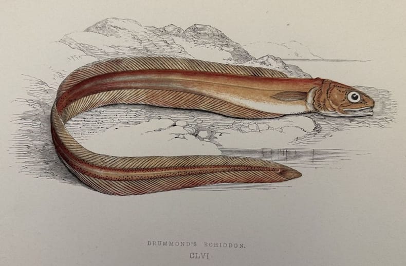 TECNICA: Cromolitografia DIMENSIONI FOGLIO: cm 25x15,2 DIMENSIONI INCISIONE: cm 16,5x8 EPOCA: 1865 Cromolitografia tratta dall'imponente opera di Jonathan Couch "The history of the fishes of the british Islands" pubblicata da Groombridge and Sons nel 1865 sui pesci delle Isole britanniche e non solo.<BR>Le specie sono molto curate nei particolari e nella colorazione.<BR>In ottime condizioni.