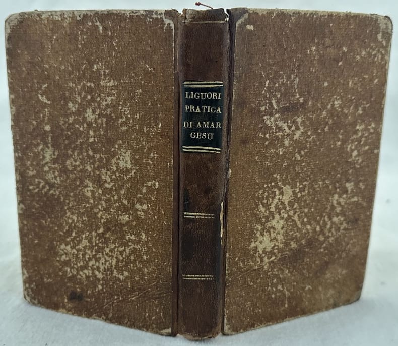 Edizione del 1831 di questa opera di Alfonso De Liguori sul modo di amare Gesù Cristo. L'opera è in un volume ed è completa. Alla fine Ristretto delle virtù dichiarate nell'opera che dee praticare chi ama Gesù Cristo. In buone condizioni. Copertina in mezza pelle con titolo e decorazioni in oro al dorso in buone condizioni generali con lievi usure ai margini e dorso. Legatura in buone condizioni. Pagine in buone condizioni con fioriture. In 16. cm 16x10. Pp. 267+(1). Edition of 1831 of this work of Alfonso De Liguori about the way to love Jesus Christ. The work is in one volume and it is complete. At the end Ristretto delle virtù dichiarate nell'opera che dee praticare chi ama Gesù Cristo. In good conditions. Half leather coeval cover with gilted title and decorations in the spine in good conditions lightly worn in the extremities. Binding in good conditions. Pages in good conditions with foxing. In 16. cm 16x10. Pp. 267+(1).