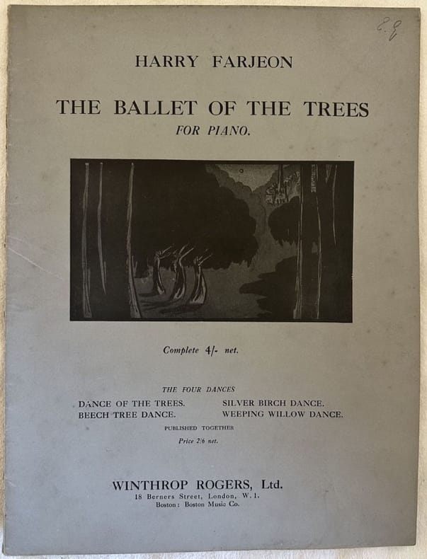 Edizione del 1922 della melodia per pianoforte dell'opera "The ballet of the trees" del compositore inglese Harry Farjeon (1878-1948). Illustrazione in copertina. In ottime condizioni. Copertina editoriale in ottime condizioni con lievi usure marginali. Legatura in buone condizioni. Pagine in buone condizioni con rare fioriture. In Folio. cm. 31x23,5. Pp. 32.Edition of 1922 of the melody for piano of the opera "The ballet of the trees" byt he english composer Harry Farjeon (1878-1948). Illustration in the cover. In very good conditions. Editorial cover in very good conditions lightly worn in the extremities. Binding in good conditions. Pages in good conditions with occasional foxing. In Folio. cm. 31x23,5. Pp. 32.