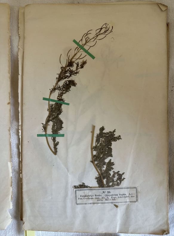 Edizione del 1856 di questo erbario delle piante Fanerogame del botanico Hermann Wagner (1824-1879). Siamo in possesso della parte seconda solamente contenente 25 specie della Famiglia delle Crucifere contenute in 17 fogli. Per ogni esemplare è presente l'etichetta con il nome in volgare in lingua tedesca, nome scientifico,mese di raccolta. Le condizioni di conservazioni sono buone, qualche esemplare presenta difetti e parti mancanti. Copertina editoriale in discrete condizioni con usure marginali. Piatti staccati. Legatura in buone condizioni. Pagine in buone condizioni con fioriture. In 4. cm. 32x20. Pp. (19).Edition of 1856 of this herbarium of the Fanerogame byt he botanist Hermann Wagner (1824-1879). We only have the second part only containing 25 species of family Crucifere contained in 17 pages. For each species there is the label with the name in german and scientiphic language, month of collection. the conditions are good, some plant has defeats and lackings. Editorial cover in fair conditions with wearings in the edges. Plates detached. Binding in good conditions. Pages in good conditions with foxing. In 4. cm. 32x20. Pp. (19).