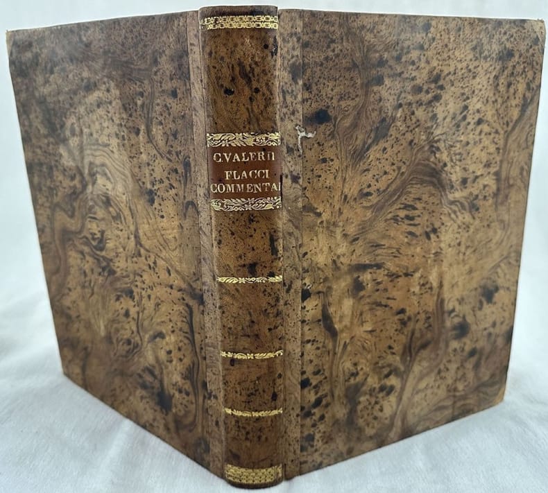 Pregevole edizione del Maggio 1519, variante B, curato dall'umanista bolognese Giovanni Battista Pio (ca 1470-1540) del poema epico "Argonautica" composto dal poeta latino Valerio Flacco nato a Sezze e morto intorno al 92 (Cfr. EDIT16 web). L'"editio princeps" di Valerio Flacco fu pubblicata a Bologna nel 1474, ma G.B. Pio trovò nuovi codici e ripubblicò il testo con gli ultimi due canti che mancavano e con l'aggiunta dell'Argonautica di Apollonio Rodio, utilizzata per integrare e condurre a conclusione la narrazione di Valerio Flacco che si interrompeva all'ottavo libro. Caratteri romani con commento in cornice in latino e greco. Dati editoriali indicati alla carta 2i2r. Insieme al volume un antico foglio con note manoscritte. "On fait grand cas de cette édition, qui est belle et fort rare". Graesse, VII/241: "Nouvelle récension du texte sur de bons mss., probablement sur un manuscrit de Matthias Corvinus. L'auteur de la version latine d'Orphée fut Leodrisius Cribellus". Manca ad Adams e S.T.C. In discrete condizioni ma completo. Copertina ottocentesca in mezza pelle con titolo e decorazioni in oro su tassello al dorso in ottime condizioni generali con lievi usure marginali. Legatura in buone condizioni. All'interno le pagine si presentano in buone condizioni con fioriture e bruniture marginali. Frontespizio e prime quattro carte presentano mancanze con perdita di testo (le pagine rovinate sono state intervallate da fogli bianchi). Eccessiva rifilatura al margine superiore di pag. CLXV, CLXXXVIII, CLXXXIX con perdita dei numeri di pagina. L'indice è stato rilegato all'inizio dell'opera anzichè alla fine. Bruniture. In 4. Dim. 29,5x21,5 cm. Pp. (20)+CLXXXIX+(1).Peso Kg. 1,00Scarce post incunable of May 1519, variant B, of the epic poem "Argonautica" written by the latin poet Valerio Flacco born in Sezze and dead around 92 (Cfr. EDIT16 web). The work contains also the fourth book of'"Argonautica" by Apollonio Rodio, used to integrate and finish the narration of "Argonautica" by Valerio Flacco which was interrupted at 8th book. Latin text with comment in latin and greek of Giovanni Battista Pio (1540 m.). Editorial information in page 2i2r. Together with the volume and antique page with handwritten notes. In fair conditions but complete. half leather cover of 19th century with gilted title and decorations in the spine in very good general conditions lightly worn in the extremities. Binding in good conditions. Inside pages are in good conditions with foxing and yellowing in the extremities. Title page and first four pages with lackings and loss of text (between the ruined pages there are some blank pages). Upper edge of pag. CLXV, CLXXXVIII, CLXXXIX has been excessively cut with loss of number of pages. The index has been bound at the beginning of the work instead of the end. Yellowings. In 4. Dim. 29,5x21,5 cm. Pp. (20)+CLXXXIX+(1).Peso Kg. 1,00<BR><BR>