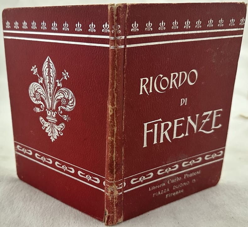 Grazioso Ricordo di Firenze, una raccolta di 30 foto in bianco e nero dei primi del novecento.<BR>Al verso descrizione delle tavole in lingua italiana, francese, inglese e tedesca.<BR>Bella brossura editoriale illustrata. Brossura editoriale illustrata in ottime condizioni generali con lievi usure ai margini e dorso. Legatura in buone condizioni. All'interno le pagine si presentano in ottime condizioni con rare fioriture. In 16. Dim. 16,5x12 cm.Interesting Remembering of Florence, a collection of 30 black and white photoes of early 20th century. In the verso decsription of plates in italian, french, english and german language. Beautiful editorial illustrated cover. Editorial illustrated cover in very good general conditions lightly worn in the extremities. Binding in good conditions. Inside pages are in very good conditions with occasional foxing. In 16. Dim. 16,5x12 cm.<BR><BR>