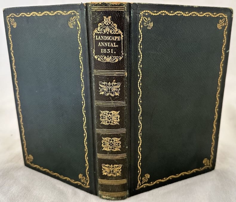 Illustrated from drawings by S. Prout & J.D. Harding. The Landscape Annuals for 1830, 1831, 1832 & 1833. Jennings, London, 1830-1833. In-16 gr. (mm. 195x120), 4 volumi, p. pelle edit., tit. oro al dorso, tagli dorati, pp. (8),278,(2); VI,(2),271; (4),II,(2),286,(10); (8),271,(5). Offriamo, in "prima edizione", i seguenti annuali, molto ben illustrati (come da Indice) da complessive 104 pregevoli tavv. f.t. inc. su acciaio (comprese le belle antiporte) che raffigurano vedute di città svizzere e italiane, tutte ampiamente descritte: - 1830, (Svizzera e Italia) dedicato a: Ginevra, Losanna, Montreaux, Martigny, Sion, Domodossola, Arona, Milano, lago di Como, Verona, Vicenza, Padova, Venezia, Ferrara, Bologna e Roma.- 1831, dedicato alle città italiane di: Venezia, Roma, Rimini, Civita Castellana, Terni, Narni, città e lago di Lugo.- 1832, dedicato a: Milano, lago Maggiore, Firenze, Fonti del Clitunno, Spoleto, Nemi, Napoli, Pozzuoli, Castellammare, Sorrento, Vietri, Cetara.- 1833, dedicato a: Vietri, Vico, Gaeta, il Garigliano, Castel Gandolfo, Narni, Terni, Fiesole, Val di Magra, La Spezia, Genova, Savona, Albenga, Alassio, Ventimiglia, Nizza, Ivrea, Verres, Aosta.Esemplare ben conservato.