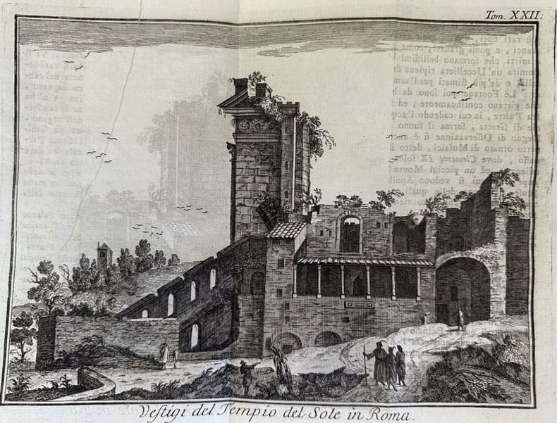 Veduta animata del Tempio del Sole a Roma. Atlante: Lo stato presente di tutti i popoli del mondo 1738-66 Autore: Thomas Salmon (1679-1767) Data: 1759 Tecnica: incisione su rame Dimensione del foglio: 240x183 mm Dimensione incisione: 202x152 cm Condizioni: Buone. Rare fioriture. Animated view of Arc of Costantine in Rome. Atlas: Lo stato presente di tutti i popoli del mondo 1738-66 Autore: Thomas Salmon (1679-1767) Date: 1759 Technique: Copper etching Leaf Dimension: 240x183 mm Engraving Dimension: 202x152 cm Conditions: Good conditions. Occasional foxing.