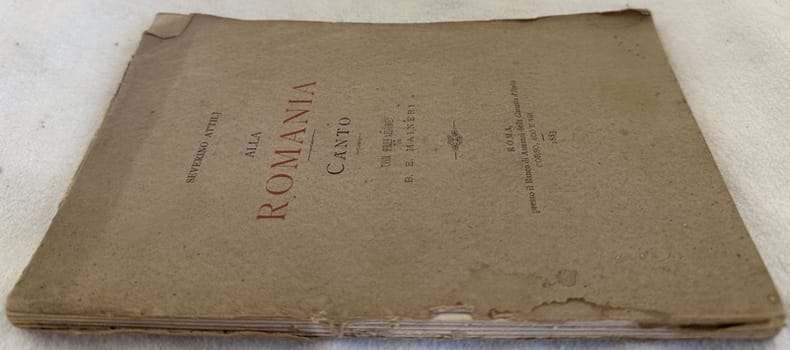 Edizione del 1883 di questa opera sulla Romania scritta da Severino Attilj. Prefazione di B. E. Maineri. Nella prima parte descrizione della Romania. Segue poema. In mediocri condizioni. Copertina editoriale in discrete condizioni con usure e mancanze. Legatura quasi assente. Pagine in discrete condizioni con fioriture. In 8. cm 19x12,5. Pp. 63+84.Edition of 1883 of this work about Romania written by Severino Attilj. Prefation by B. E. Maineri. In the first part description of Romania. Then poem. In poor conditions Editorial cover in fair conditions with wearings and lackings. Binding almost lacks. Pages in fair conditions with foxing. In 8. cm 19x12,5. Pp. 63+84.