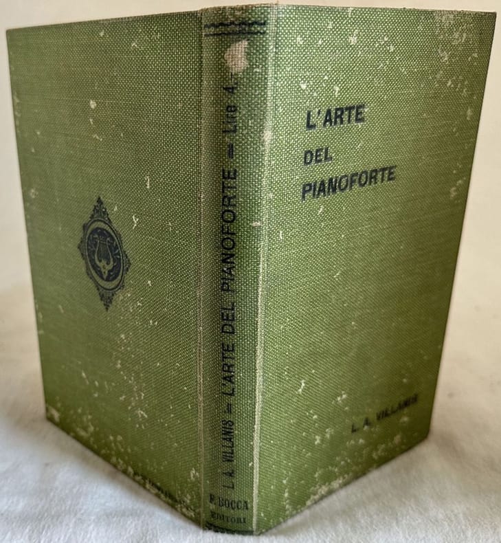 Edizione del 1907 di questo volume sull'arte del pianoforte in Italia scritto da Luigi Alberto Villanis. All'interno: Premesse, scuole indirizzo del periodo considerato, Le forme, L'Italia: sguardo generale, ambiente, artisti ec.. Lista dei compositori (dal 1750 al 1850) particolarmente menzionari nell'opera ed elenco dei più noti compositori italiani nati dopo il 1850 che pubblicarono musica per pianoforte. In mediocri condizioni. Copertina in tela editoriale in mediocri condizioni con usure e mancanze marginali. Legatura in discrete condizioni con lievi rotture. Corpo del libro quasi del tutto staccato dalla copertina. Pagine in buone condizioni generali con rare fioriture. In 8. Dim. 20,5x13 cm. Pp. XI+299+(3).Edition of 1907 of this volume about the art of the piano in Italy written by Luigi Alberto Villanis. Inside: Premesse, schools in the period,forms, Italy: general perspective, environment, artists ec.. List of composer (from 1750 to 1850) particularly mentioned in the work and list of the most famous italian composer born after 1850 who published music for piano. In poor conditions. Cloth editorial cover in poor conditions lightly worn with wearings in the extremities. Binding in fair conditions with light cracks. The body of the book almost totally detached. Inside pages are in good conditions with occsional foxing. In 8. Dim. 20,5x13 cm. Pp. XI+299+(3).
