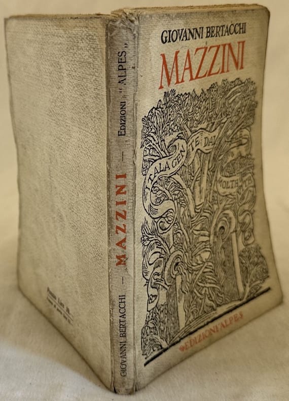 Seconda edizione del 1925 di questa opera su Giuseppe Mazzini scritta da Giovanni Bertacchi.. Dedica alla prima carta bianca. In buone condizioni. Copertina editoriale in buone condizioni con lievi usure ai margini e dorso. Legatura in buone condizioni. All'interno le pagine si presentano in buone condizioni con fioriture. In 8. Dim. 24,5x16,5 cm. Pp. 198+(2).<BR>Second edition of 1925, of this work about Giuseppe Mazzini written by Giovanni Bertacchi.. Dedication in the first endpage. In good conditions. Editorial cover in good general conditions slightly worn in the edges and spine. Binding in good conditions. Inside pages are in good conditions with foxing. In 8. Dim. 24,5x16,5 cm. Pp. 198+(2).<BR>