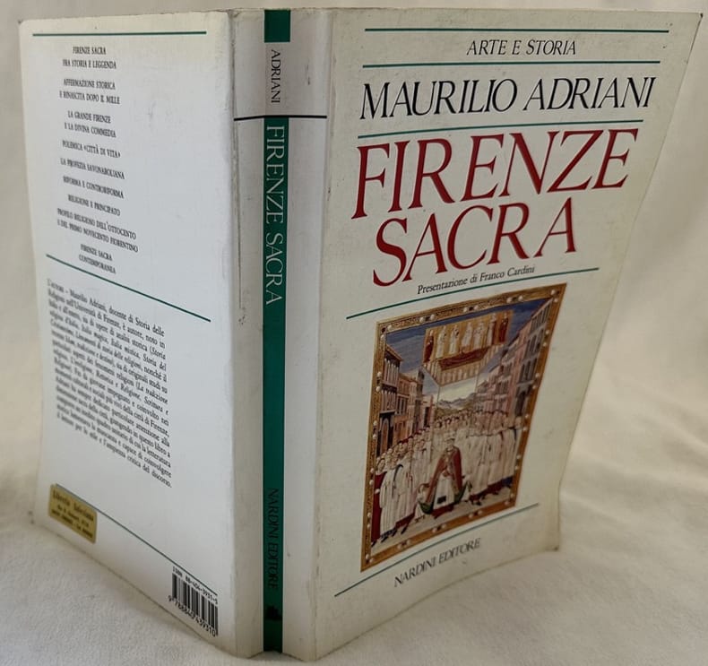 Edizione del 1990 di questo volume su Firenze di Maurilio Adriani.<BR><BR>L'autore, fin da giovane impegnato e coinvolto nei momenti culturali e sociali più vivi della città di Firenze, ha sempre dedicato particolare attenzione alla dimensione sacra della città, giungendo in questo libro a comporre un inedito quadro umanitario di cui la letteratura storica lamentava la mancanza e capace di coinvolgere per lo stile e l'ampiezza critica del lavoro.<BR><BR>Numerose fotografie all'interno.<BR><BR>In buone condizioni.Copertina editoriale in buone condizioni generali con lievi usure ai margini e dorso. Legatura in buone condizioni. Pagine in buone condizioni con rare fioriture. In 8. cm 23x15. Pp. 343+(3).Edition of 1990 of this volume about Florence by Maurilio Adriani. Different photoes inside. In good conditions. Editorial cover in good conditions lighttle worn in the extremities. Binding in good condition. Pages in good conditions with foxing. In 8. cm 23x15. Pp. 343+(3).