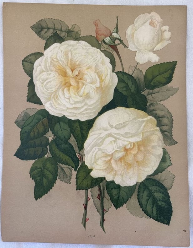 Cromolitografia del 1903 che mostra una varietà di rosa di Paul Auguste Hariot (1854-1917) celebre botanico. Di grandi dimensioni. Autore: Paul Auguste Hariot (1854-1917) Atlante: Le livre d'or des roses Data: 1903 Tecnica: cromolitografia Dimensione del foglio: 31,5x25 cm Dimensione incisione: 27x20,5 cm Condizioni: Buone. Rare fioriture.Chromolithography of 1903 showing a variety of rose by Paul Auguste Hariot (1854-1917) famous botany. Of big size. Author:Paul Auguste Hariot (1854-1917) Atlas:Le livre d'or des roses Date: 1903 Technique: chromolithograph Leaf Dimension:31,5x25 cm Engraving Dimension:27x20,5 cm ,5Conditions: Good conditions. Some foxing.
