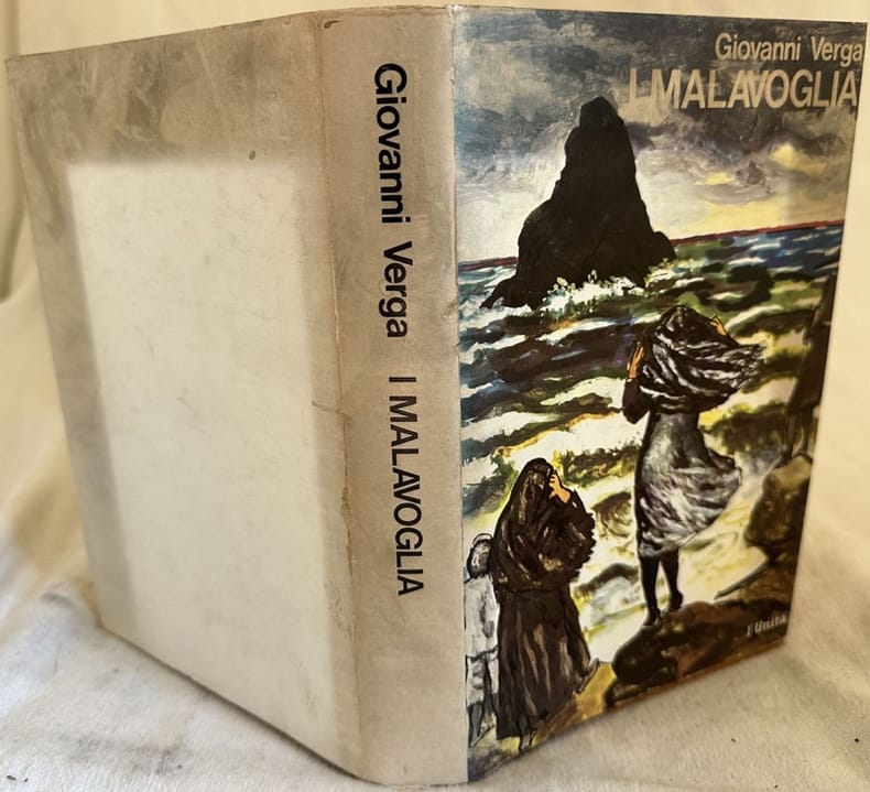Edizione del 1979 del celebre romanzo "I Malavoglia" di Giovanni Verga. Selezione di racconti da Vita dei campi e Novelle rusticane a cura di Enrico Ghidetti. Introduzione di Edoardo Sanguineti. All'interno otto tavole originali fuori testo di Renato Guttuso e alcune tavole con foto dell'infanzia di Verga. In ottime condizioni. Copertina in tela editoriale con sovraccoperta illustrata in buone condizioni generali. Macchie. Legatura in buone condizioni. Pagine in ottime condizioni con rare fioriture. In 8. Dim. 22x15 cm. Pp. 421+(3). Edition of 1979 of the famous novel "I Malavoglia" by Giovanni Verga. Selection of tales from Vita dei campi and Novelle rusticane by Enrico Ghidetti. Introduction by Edoardo Sanguineti. Inside there are eight out of text plates by Renato Guttuso and some plates with photoes of the childhood of Verga. In very good conditions. Cloth editorial cover with illustrated dustjacket in good general conditions. Stains. Binding in good conditions. Pages are in very good conditions with occasional foxing. In 8. Dim. 22x15 cm. Pp. 421+(3).