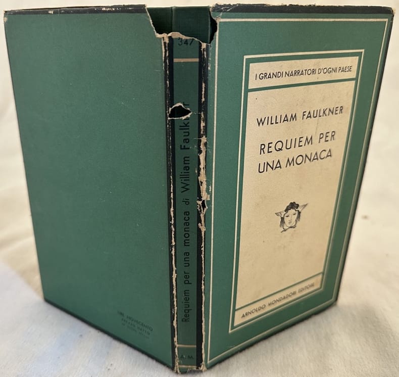 Prima edizione del 1955 di questo romanzo di William Faulkner (1897-1962) Numero 347 della collana Medusa "I grandi narratori d'ogni paese". In buone condizioni. Copertina editoriale con sovraccoperta in buone condizioni generali con lievi usure ai margini e dorso. Sovraccoperta in discrete condizioni. Legatura in buone condizioni. All'interno le pagine si presentano in ottime condizioni con rare fioriture. In 8. Dim. 19,5x12 cm. Pp. 228+(10). First edition of 1965 of this novel by William Faulkner (1897-1962). Number 347 of the series Medusa "I grandi narratori d'ogni paese". In good conditions. Editorial cover with dustjacket in good general conditions lightly worn in the extremities. Dustjacket in fair conditions. Binding in good conditions. Inside pages are in very good conditions with occasional foxing. In 8. Dim. 19,5x12 cm. Pp. 228+(10).