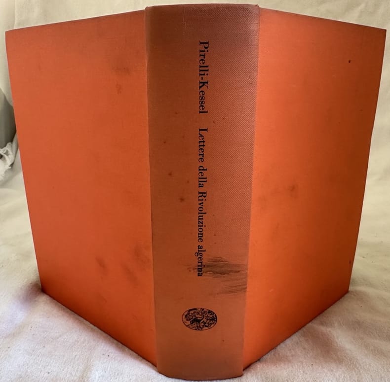 Edizione del 1963 su questa monografia sulla Rivoluzione algerina a cura di Patrick Kessel e Giovanni Pirelli. All'interno: L'operation Orange Amere, Caccia al Fellaga, Primi documenti sui campi in Algeria, il 20 agosto 1955 a Ain Abid, Un dirigente del CRUA davanti al Tribunale militare d'Algeri, Operazioni di polizia a Orano 1956, Studente dell'UGEMA a Barberousse, Campi in Algeria, Battaglia per l'ONU, Ad Algeri dopo il passaggio all'esercito dei poteri di polizia, Tribunale di Algeri, Lettere di algerini a parenti in Francia, Ad Algeri durante l'inchiesta della Commission de Sauvegarde, Donne militanti a Barberousse, La AMison Centrale di Lambese nel 1955-57, Campo di Tefeschoun, Gli algerini in Francia, Parenti in Algeria, Operai algerini in Francia, Studenti algerini in Francia Campi in Algeria dalle Carceri d'Algeria ecc.. In ottime condizioni. Copertina in tela editoriale in buone condizioni generali con lievi usure ai margini e dorso. Legatura in buone condizioni. All'interno le pagine si presentano in ottime condizioni con rare fioriture. In 8. Dim.21,5x15,5 cm. Pp. XXXVIII+793+(7). Edition of 1963 on this monography about Algeria Revolution by Patrick Kessel and Giovanni Pirelli. Inside: L'operation Orange Amere, Caccia al Fellaga, Primi documenti sui campi in Algeria, il 20 agosto 1955 a Ain Abid, Un dirigente del CRUA davanti al Tribunale militare d'Algeri, Operazioni di polizia a Orano 1956, Studente dell'UGEMA a Barberousse, Campi in Algeria, Battaglia per l'ONU, Ad Algeri dopo il passaggio all'esercito dei poteri di polizia, Tribunale di Algeri, Lettere di algerini a parenti in Francia, Ad Algeri durante l'inchiesta della Commission de Sauvegarde, Donne militanti a Barberousse, La AMison Centrale di Lambese nel 1955-57, Campo di Tefeschoun, Gli algerini in Francia, Parenti in Algeria, Operai algerini in Francia, Studenti algerini in Francia Campi in Algeria dalle Carceri d'Algeria ecc.. In very good conditions Cloth editorial cover in good general conditions lightly worn in the extremities. Binding in good conditions. Inside pages are in very good conditions with occasional foxing. In 8. Dim.21,5x15,5 cm. Pp. XXXVIII+793+(7).<BR><BR>