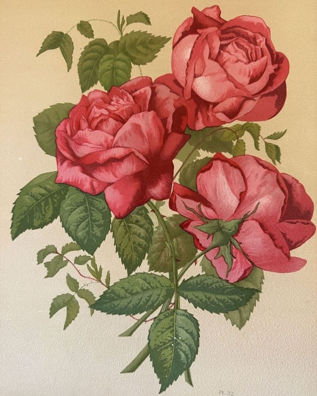 Cromolitografia del 1903 che mostra una varietà di rosa di Paul Auguste Hariot (1854-1917) celebre botanico. Di grandi dimensioni. Autore: Paul Auguste Hariot (1854-1917)Atlante: Le livre d'or des roses Data: 1903 Tecnica: cromolitografiaDimensione del foglio: 31,5x24,5 cm Dimensione incisione: 28x22 cm Condizioni: Buone. Rare fioriture.Chromolithography of 1903 showing a variety of rose by Paul Auguste Hariot (1854-1917) famous botany. Of big size. Author:Paul Auguste Hariot (1854-1917) Atlas:Le livre d'or des roses Date: 1903 Technique: chromolithography Leaf Dimension:31,5x24,5 cm Engraving Dimension:26,5x21,5 cm ,5Conditions: Good conditions. Some foxing.<BR><BR>