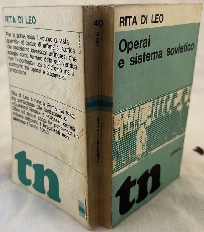 Edizione del 1970 di questo studio sugli operai nel sistema sovietico scritto da Rita Di Leo. Firma datata 1970 al frontespizio. Sottolineature. In buone condizioni. Copertina editoriale in buone condizioni generali con lievi usure ai margini e dorso. Legatura in buone condizioni. All'interno le pagine si presentano in ottime condizioni con rare fioriture. In 16. Dim. 18x11 cm. Pp. 349+(3).Edition of 1970 of this study about workers in soviet system written by Rita Di Leo. Signature dated 1970 in the title page.Underlininings. In good conditions. Editorial cover in good general conditions lightly worn in the extremities. Binding in good conditions. Inside pages are in very good conditions with occasional foxing. In 16. Dim. 18x11 cm. Pp. 349+(3)<BR><BR>
