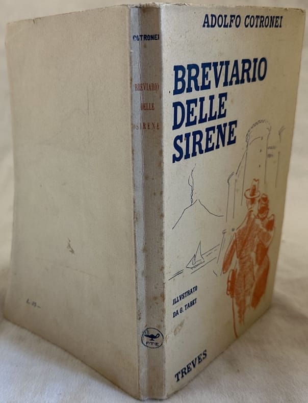 Edizione del 1937 di questa opera sull'Ottocento partenopeo scritto da Adolfo Cotronei. All'interno: Salvatore di Giacomo, Aria di Napoli, Le virtù del fuoco, Canti, Mariuccia e Concettina, Frati Camaldolesi, La licenziosa, Con sparafucile (Sulla Marina grande di Procida), L'isola addormentata (Ischia), Enrico Caruso, Da Mergellina a Posillipo dal Molo Beverello a Capri ecc... All'interno sono presenti 51 disegni di G. Tabet. In buone condizioni. Copertina editoriale in buone condizioni generali con lievi usure ai margini e dorso. Legatura in buone condizioni. All'interno le pagine si presentano in ottime condizioni con rare fioriture. In 8. Dim. 22x14,5 cm. Pp. 173+(3).Edition of 1937 of this work about Neaples during 19th century written by Adolfo Cotronei. Inside: Salvatore di Giacomo, Aria di Napoli, Le virtù del fuoco, Canti, Mariuccia e Concettina, Frati Camaldolesi, La licenziosa, Con sparafucile (Sulla Marina grande di Procida), L'isola addormentata (Ischia), Enrico Caruso, Da Mergellina a Posillipo dal Molo Beverello a Capri ecc... Inside there are 51 drawings by G. Tabet. In good conditions. Editorial cover in good general conditions lightly worn in the extremities. Binding in good conditions. Inside pages are in very good conditions with occasional foxings. In 8. Dim. 22x14,5 cm. Pp. 173+(3).
