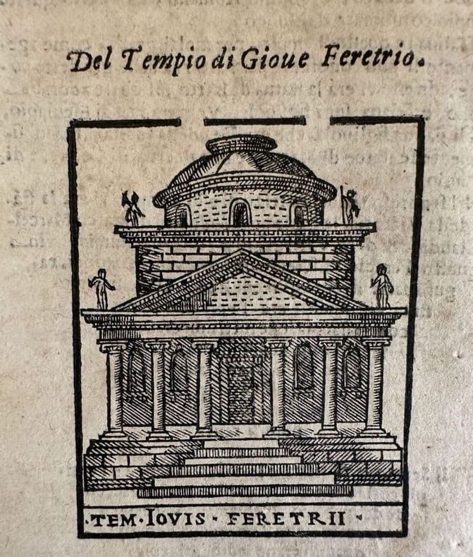 Veduta del Tempio di Giove a Roma del 1680 circa. Al verso descrizione. Atlante: Dell'Antichità di Roma Data: 1680 circa Tecnica: incisione su rame Dimensione del foglio: 150x95 mm Dimensione incisione: 70x55 cm Condizioni: Buone. Rare fioriture. View of Temple of Giove in Rome of 1680 circa. Atlas: Descrizione di Roma Antica Date: 1680 circa Technique: Copper etching Leaf Dimension: 150x95 mm Engraving Dimension: 70x55 cm Conditions: Good conditions. Occasional foxing.