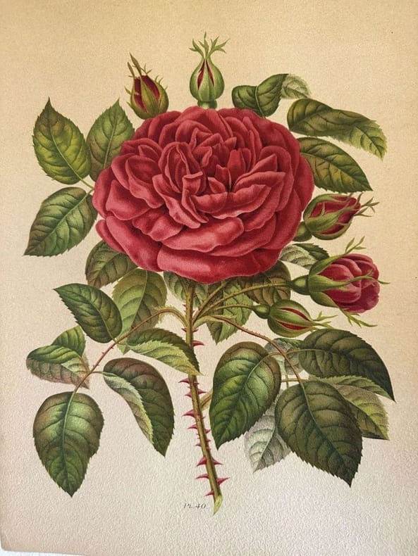 Cromolitografia del 1903 che mostra una varietà di rosa di Paul Auguste Hariot (1854-1917) celebre botanico. Di grandi dimensioni. Autore: Paul Auguste Hariot (1854-1917) Atlante: Le livre d'or des roses Data: 1903 Tecnica: cromolitografia Dimensione del foglio: 31,5x25 cm Dimensione incisione: 26,5x20 cm Condizioni: Buone. Rare fioriture.Chromolithography of 1903 showing a variety of rose by Paul Auguste Hariot (1854-1917) famous botany. Of big size. Author:Paul Auguste Hariot (1854-1917) Atlas:Le livre d'or des roses Date: 1903 Technique: chromolithography Leaf Dimension:31,5x25 cm Engraving Dimension:26,5x20 cm ,5Conditions: Good conditions. Some foxing.