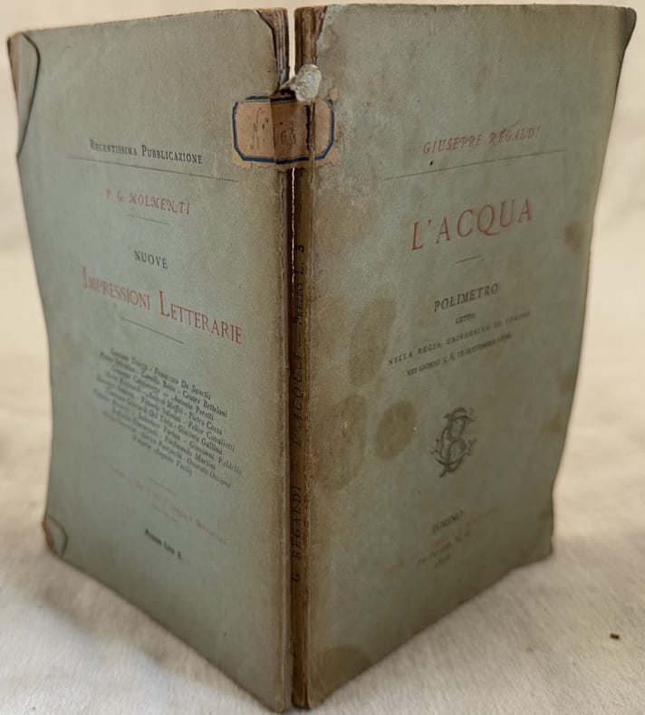 Prima edizione del 1878 di questa poesia "scientifica" del poeta e scrittore Giuseppe Regaldi (Novara 1809- Bologna 1883). Regaldi in gioventù ebbe molto successo come improvvisatore ma nel 1834 venne espulso da Milano e nel 1835 da Parma come sovversivo. Dopo essersi stabilito in Francia tornò in Italia e visse prima a Napoli poi in Sicilia. Nel 1849 divenne politicamente sospetto e imprigionato per un breve periodo. In buone condizioni. Copertina editoriale in buone condizioni generali con lievi usure ai margini e dorso. Legatura in buone condizioni. Pagine in buone condizioni con fioriture. In 16. Dim. 18,5x12,5 cm. Pp. 162. First edition of 1878 of this "scientiphic" poem by the poet and writer Giuseppe Regaldi (Novara 1809- Bologna 1883). Regaldi was expelled from Milan and Parma and then imprisoned for political reasons. In good conditions. Editorial cover in good general conditions lightly worn in the extremities. Binding in good conditions. Pages are in good conditions with foxing. In 16. Dim. 18,5x12,5 cm. Pp. 162.
