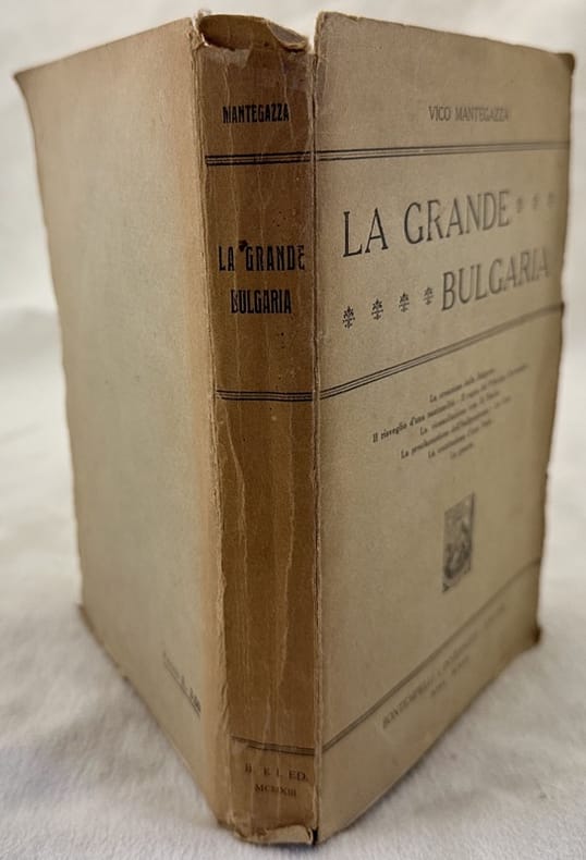Edizione del 1913 di questa opera sulla Bulgaria scritto dallo scrittore giornalista e imprenditore italiano Vico Mantegazza (1856-1934). All'interno: La creazione della Bulgaria; Il risveglio di una nazionalità gli antichi Czar; Il Regno del Principe Alessandro La guerra con la Serbia; La riconciliazione con la Russia L'insurrezione in Macedonia; La proclamazione dell'indipendenza; Lo Czar; L'avvenire della Bulgaria; La guerra ecc... Ritratto dello Czar. Volume omaggio degli editori. In mediocri condizioni. Copertina editoriale in discrete condizioni con lievi usure ai margini e dorso. Legatura quasi assente. Corpo del libro totalmente staccato. Pagine in buone condizioni con fioriture. In 8. cm. 19,5x13,5. Pp. 306+(4).Edition of 1913 of this work about Bulgaria written by the writer journalist and entrepeneur Vico Mantegazza (1856-1934). Portrait of Czar. Volume gift of the editors. In poor conditions. Editorial cover in fair conditions lightly worn in the extremities. Binding almost lacks. The body of the book almost missing. Pages in good conditions with foxing. In 8. cm. 19,5x13,5. Pp. 306+(4).