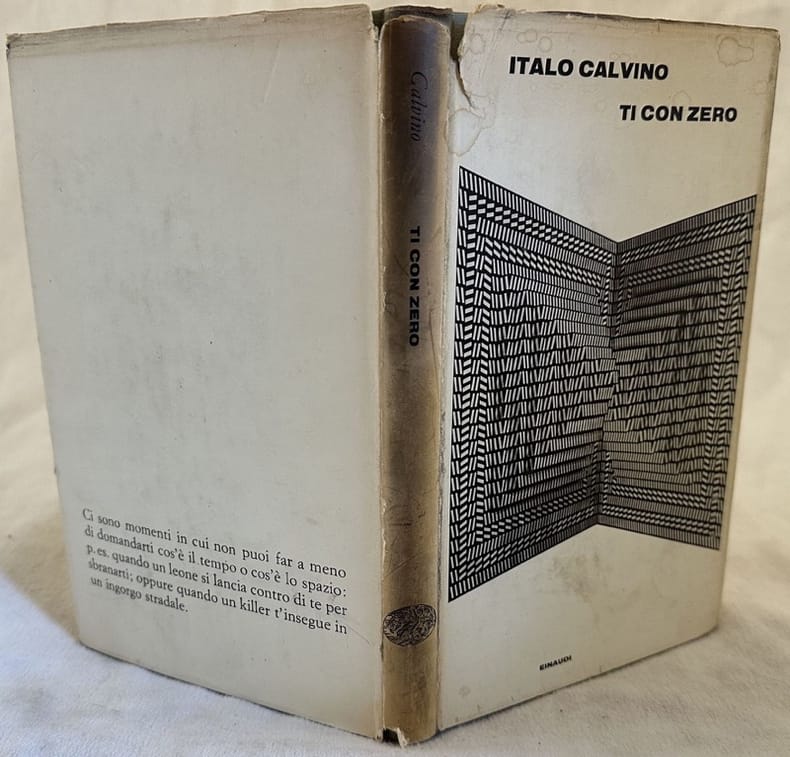Prima edizione del 1967 di questa opera di Italo Calvino. "Undici racconti, di cuis ei apparsi, con varianti, in periodici e volumi collettini, 1966-67, e cinque inediti. Nota ai risvolti (dell'A.). Il volume ottenne il Premio Viareggio 1968, che peerò fu rifiutato polmicamente dall'A." (Cfr. Gambetti Vezzosi P. 154). Dedica datata 1968 alla prima carta bianca. In buone condizioni. Copertina in tela editoriale con sovraccoperta in buone condizioni generali con lievi usure marginali. Macchie al dorso. Legatura in discrete condizioni. Pagine in buone condizioni con rare fioriture. In 8. cm 22,5x14,5. Pp. 162+(10).First edition of 1967 of this work by Italo Calvino. "Undici racconti, di cuis ei apparsi, con varianti, in periodici e volumi collettini, 1966-67, e cinque inediti. Nota ai risvolti (dell'A.). Il volume ottenne il Premio Viareggio 1968, che peerò fu rifiutato polmicamente dall'A." (Cfr. Gambetti Vezzosi P. 154). Dedication dated 1968 in the first blank page. In good conditions. Cloth editorial cover with dustjacket in good conditions lightly worn in the extremities. Stains in the spine. Binding in fair conditions. Pages in good conditions with occasional foxing. In 8. cm 22,5x14,5. Pp. 162+(10).