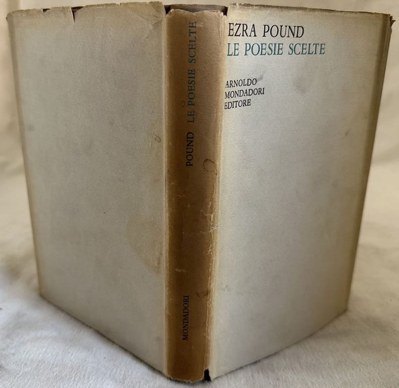 Seconda edizione italiana del luglio 1961 di questa raccolta di poesie del poeta americano Ezra Pound (1885-1972). Prefazione di Thomas Eliot. Traduzione di Alfredo Rizzardi. Dedica datata luglio 1963 al frontespizio. In buone condizioni. Copertina in tela editoriale con sovraccoperta in buone condizioni con lievi usure ai margini e dorso. Legatura in buone condizioni. Pagine in ottime condizioni con rare fioriture. Macchie. In 8. cm. 19,5x13,5. Pp. 210+(12).Second italian edition of july 1961 of this collection of american poet Ezra Pound (1885-1972). Prefation by Thomas Eliot. Translation by Alfredo Rizzardi. Dedication dated july 1963 in the title page. In good conditions. Cloth editorial cover with dustjacket in good conditions lightly worn in the extremities. Binding in good conditions. Pages in very good conditions with occasional foxing. Stains. In 8. cm. 19,5x13,5. Pp. 210+(12).