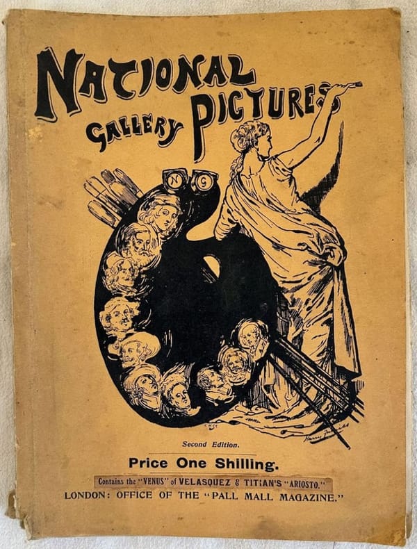 Rivista senza data ma dei primi del novecento distribuita insieme alla "Pall Mall Gazette"sui quadri della National Gallery. All'interno quadri italiani, scuola olandese fiamminga e tedesca; scuola spagnola, francese, inglese. Tra gli autori presenti: Abbott, Angelico, Bellini, Bigio, Bonheur, Bonsignori, Bordone, Borgognone, Botticelli, Bronzino, Canaletto, Champaigne, Lorraine, Constable, Conegliano, Copley, Correggio, Credi, Cuyp, Van Dick, Piero della Francesca, Gainsborough, Ghirlandaio, Giorgione, Grandi, Greuze, Guardi, Reni, Hals, Hobbema, Hogarth, Holbein, Hoppner, Landseer, Le brun, Luini, Maas, Mantegna, Metsu, Michelangelo, Moroni, Murillo, Netscher, Palma Vecchio, Perugino, Pinturicchio, Poussin, Rembrandt, Reynolds, Romerswael, Rubens, Sarto, Scott, Steen, Teniers, Terburg, Tiziano, Tintoretto, Turner, Velde, Veronese, Wilkie ecc... Numerose pubblicità d'epoca. In discrete condizioni. Copertina editoriale in discrete condizioni generali con lievi usure e strappi marginali. Legatura in discrete condizioni con lievi rotture. Corpo del libro staccato dalla copertina. All'interno le pagine si presentano in ottime condizioni con rare fioriture. In 8. Dim. 24,5x18,5 cm. Pp. X+96. Magazine not dated but of the early 20th century distributed together with "Pall Mall Gazette" about the paintings of National Gallery. Inside italian, dutch, fleming and german school; spanish french and english school. The authors inside: Abbott, Angelico, Bellini, Bigio, Bonheur, Bonsignori, Bordone, Borgognone, Botticelli, Bronzino, Canaletto, Champaigne, Lorraine, Constable, Conegliano, Copley, Correggio, Credi, Cuyp, Van Dick, Piero della Francesca, Gainsborough, Ghirlandaio, Giorgione, Grandi, Greuze, Guardi, Reni, Hals, Hobbema, Hogarth, Holbein, Hoppner, Landseer, Le brun, Luini, Maas, Mantegna, Metsu, Michelangelo, Moroni, Murillo, Netscher, Palma Vecchio, Perugino, Pinturicchio, Poussin, Rembrandt, Reynolds, Romerswael, Rubens, Sarto, Scott, Steen, Teniers, Terburg, Tiziano, Tintoretto, Turner, Velde, Veronese, Wilkie ecc... Different advertisings. In fair conditions. Editorial cover in fair conditions lightly worn in the extremities with tears. Binding in fair conditions with light cracks. The body fo the book detached from binding. Inside pages are in very good conditions with occasional foxing.In 8. Dim. 24,5x18,5 cm. Pp. X+96. <BR><BR>