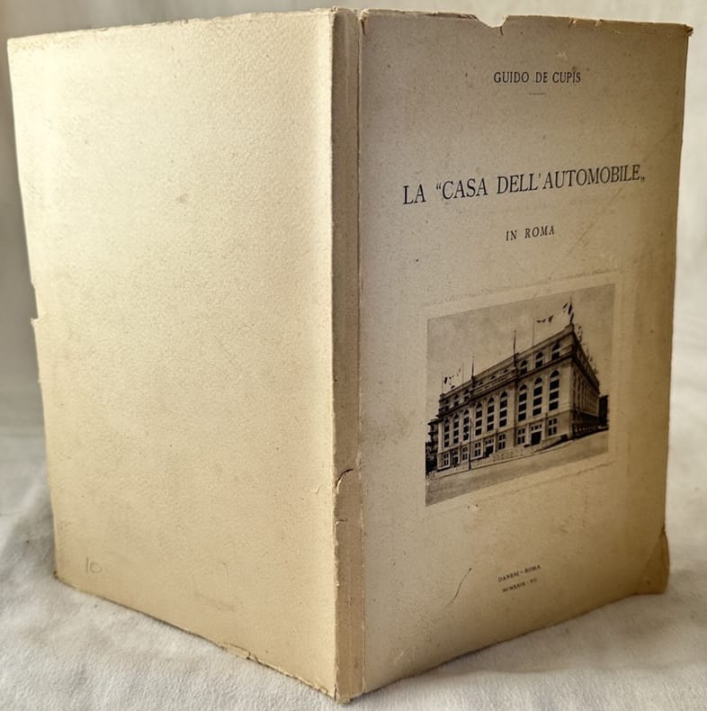 Interessante pubblicazione del 1929 di Guido De Cupis sulla "Casa dell'automobile" a Roma, avvenieristico grande garage multipiano d'Italia realizzato in piazza Verdi. La struttura poteva ospitare 1000 auto in previsione del futuro incremento automobilistico con conseguenti problemi di parcheggi. Venne demolito negli anni '60 per far posto a palazzi per uffici. Il volume è contemporaneo all'inaugurazione dell'edificio. Nella prima parte lista del consiglio di amministrazione, segue la descrizione. Alla fine sono presenti diciotto tavole fuori testo che mostrano vedute esterne e interne dell'edificio e mappe. In discrete condizioni. Copertina editoriale in buone condizioni con lievi usure ai margini e dorso. Legatura in discrete condizioni con rotture e qualche pagina staccata. Pagine in ottime condizioni con rare fioriture. In 8. Dim. 24,5x17 mm. Pp. 42+XVIII.Interesting pamphlet of 1929 written by Guido De Cupis about "Casa dell'automobile" in Rome, futuristic garage built in Verdi. The pamphlet is contemporary to the ianuguration to the building. In the first part list of the members of the Council then the description. At the end there are 18 out of text plates showing internal and external views of the building and maps. In fair conditions. Editorial cover in good conditions lightly worn in the extremities. Binding in fair conditions with cracks and some page detached. Pages in very good conditions with occasional foxing. In 4. Dim. 24,5x17 mm. Pp. 42+XVIII.