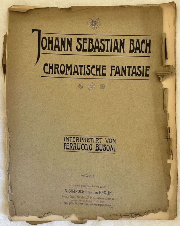 Edizione del 1902 di questa melodia del compositore tedesco Johann Sebastian Bach (1685-1750) rivista da Ferruccio Busoni.In discrete condizioni. Copertina editoriale in mediocri condizioni con usure e strappi marginali. Piatti staccati. Legatura in buone condizioni. Pagine in buone condizioni con rare fioriture.In folio. cm. 34x27,5. Pp. 23.Edition of 1902 of this melody by the german composer Johann Sebastian Bach (1685-1750) reviewed by Ferruccio Busoni. In fair conditions Editorial cover in poor conditions with wearings and tears in the extremities. Plates are detached. Binding in good conditions. Pages in good conditions with occasional foxing. In folio. cm. 34x27,5. Pp. 23.