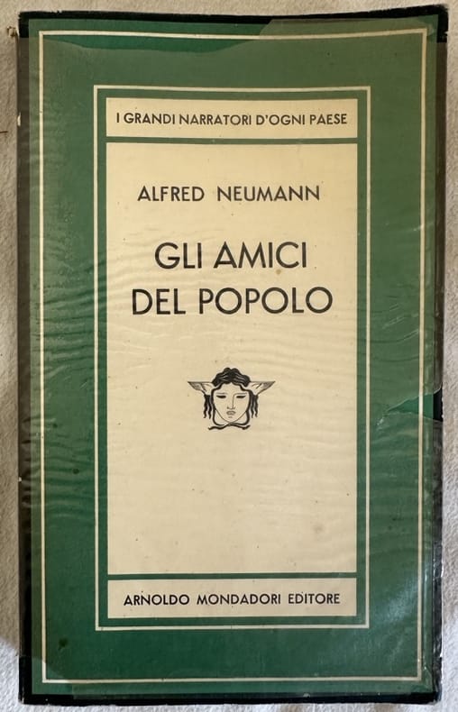 Prima edizione italiana del giugno 1950 del romanzo "Gli amici del popolo" dello scrittore tedesco Alfred Neumann (1895-1952).<BR><BR>Volume numero 251 della collana "Medusa".<BR><BR>In ottime condizioni.<BR><BR>Copertina editoriale con sovraccoperta in buone condizioni generali con lievi usure ai margini e dorso. Legatura in buone condizioni. Pagine in ottime condizioni con rare fioriture. In 8. cm 19,5x12. Pp. 405+(9First italian edition of december 1950 of the novel "Gli amici del popolo" by the german writer Alfred Neumann (1895-1952).<BR><BR>Volume number 251 of the series "Medusa".<BR><BR>In very good conditions<BR><BR>Editorial cover with dustjacket in good conditions lightly worn in the extremities. Binding in good condition. Pages in good conditions with occasional foxing. In 8. cm 19,5x12. Pp. 405+(9)<BR><BR>)